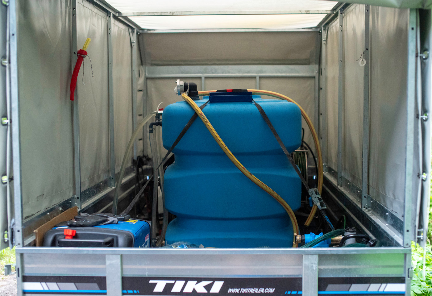 Steam from hot water is one hundred per cent natural, the plant withers almost immediately after it is steamed. The tank holds 500 l of water which allows for an hour and a half of work. ‘The same effect can be achieved by throwing boiling potato water where needed, but it takes considerably more time,’ said Merike Linnamägi, adviser to the Department of Nature Conservation of the Ministry of Climate, while keeping busy with a steam hose. Testing the steam machine is Merike's idea, and getting it to Estonia is her long-standing dream.