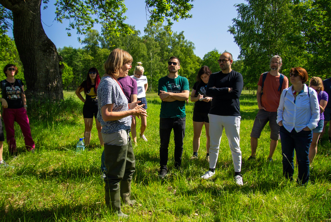 Rahvusvaheline seltskond oli taastamistöödest tõeliselt huvitatud. „Palju küsiti selle kohta, kas asustame uuendatud tiikidesse mudakonna ja harivesiliku ise, aga seda me ei tee, vaid ootame, et nad ise elupaiga üles leiaks„ selgitas Riinu, “samuti uuriti, kuidas sujub meil koostöö maaomanikega ja kas me kasutame taastatud tiike ka näiteks veevõtukohana.“ Peab ütlema, et koostöö maaomanikega on kogu taastamisprotsessi jooksul – praeguseks oleme taastanud 37 tiiki, enamik neist eramaadel – olnud väga sujuv ja kui maaomanik ei soovi, siis seal me tiike ka ei taasta.