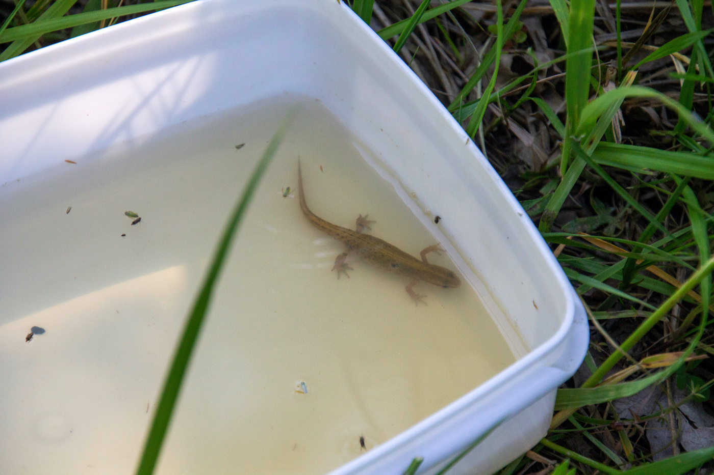 Kahepaiksete teadlase Riinu Rannapi juhendamisel leidis rahvusvaheline seltskond väikeveekogudes kahlates harivesiliku munad, ühest ka emaslooma.