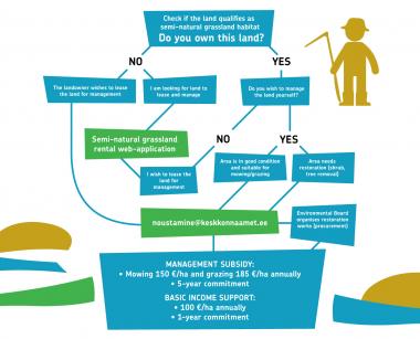 The landowner can find relevant information on where to start, how to restore and maintain their heritage meadows, and what support schemes are available in the advice section (in Estonian).